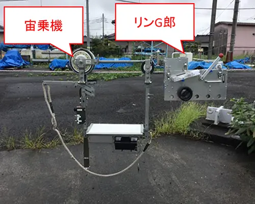 | 操作方法 | 宙乗機に連結させ牽引し、装置本体のレバーを引くことでSRリングを電線へ取り付ける。 |