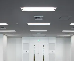 - OAフロアは配線や配管を収納でき、システム天井はレイアウト変更に応じて、照明、空調等の位置変更やメンテナンスが容易にできます。