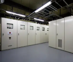 - 不測の落雷等で瞬時電圧低下が発生した時でも電源品質を維持しながら電力供給します。本装置の蓄電部は15年間メンテナンスフリー。