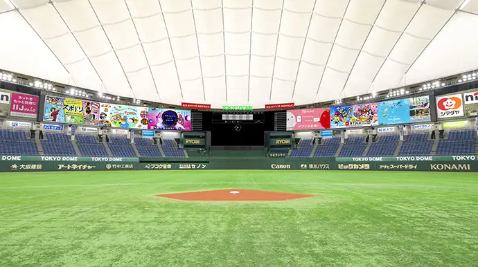 - 店舗・オフィス・競技場・公共施設において、ディスプレイなどの映像表示機器を使って情報を発信するシステムです。