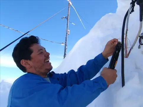南極での仕事は電気をつくるための燃料管理からはじまり、各観測器や生活機器への送電、照明やコンセントへの送電の管理・運用に加え、送電線や機器の故障などがあった場合は、速やかに修理・部品交換を行うことが不可欠です。防災設備(火災感知器・非常放送)や太陽光・風力発電設備、時には観測機器や医療機器、調理機器など専門外の修理の依頼を受けることもあり、管理も修理もなんでもこなせる便利な「電気屋さん」が求められています。