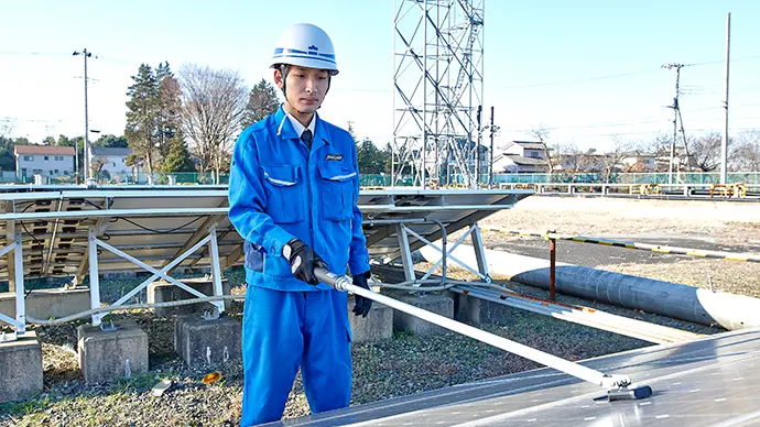 太陽光発電設備の安定運用・保守作業の効率化のため、これまでに培ってきた知見を活用し、再生可能エネルギー発電設備の保守・点検・診断などを技術開発しています。