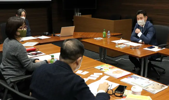 社内プロジェクトメンバーによる第2回ワークショップを、絵本の作者の岡林ちひろさん、イラストレーターの村田善子さん、CCCの廣瀬さんを交えて行いました。