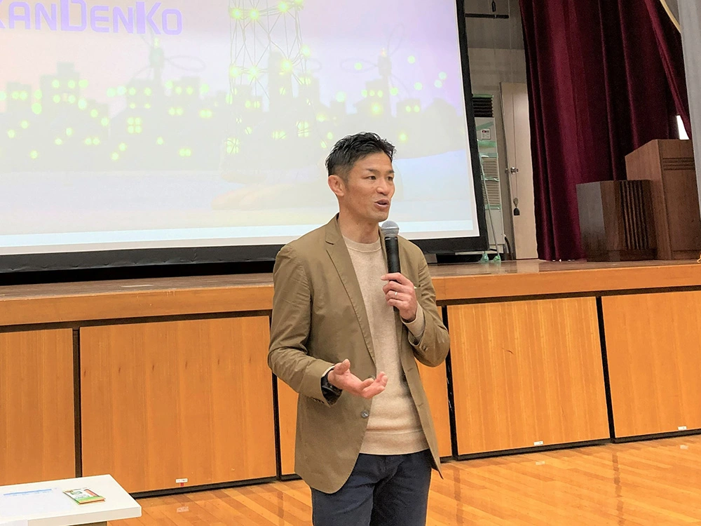 コーポレート・コミュニケーション・キャプテンの廣瀬俊朗さんが、「関電工SunSunスクール」に参加しました。