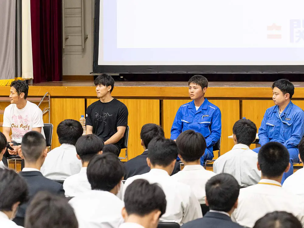 昨年に続き、「組織作りとリーダーシップ」というテーマで講演した廣瀬さんは、チームワークや個性や強みを最大限に活かしながら物事に取り組むことの大切さなどを伝えました。後半では、ラグビーの経験を通じて経験した課題解決やマインドセットについて、新入社員からの質問形式による対話を行いました。